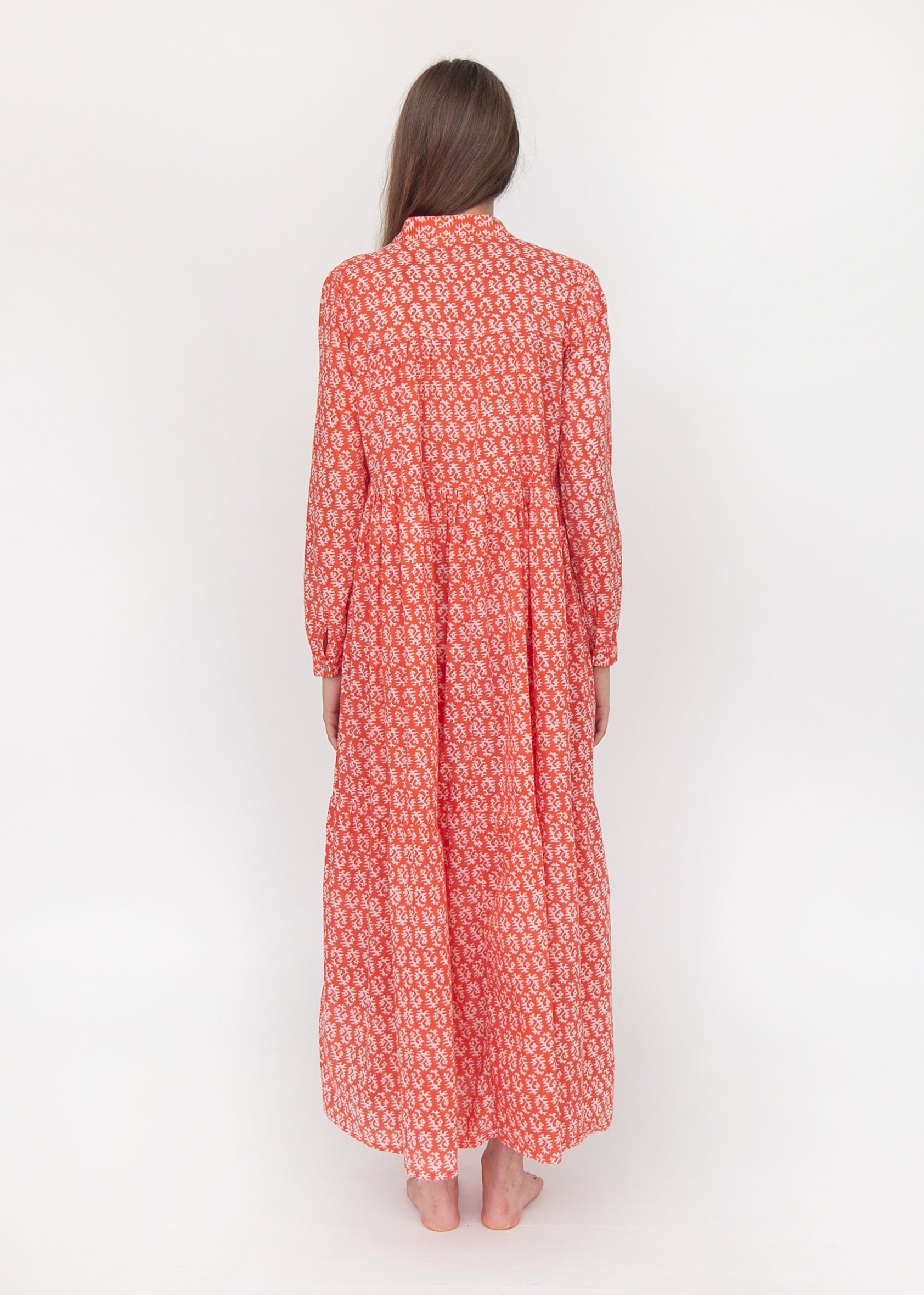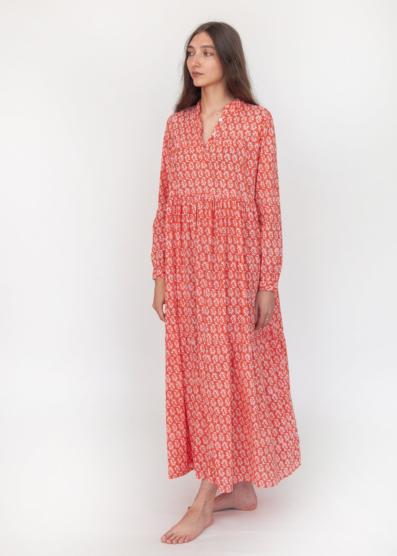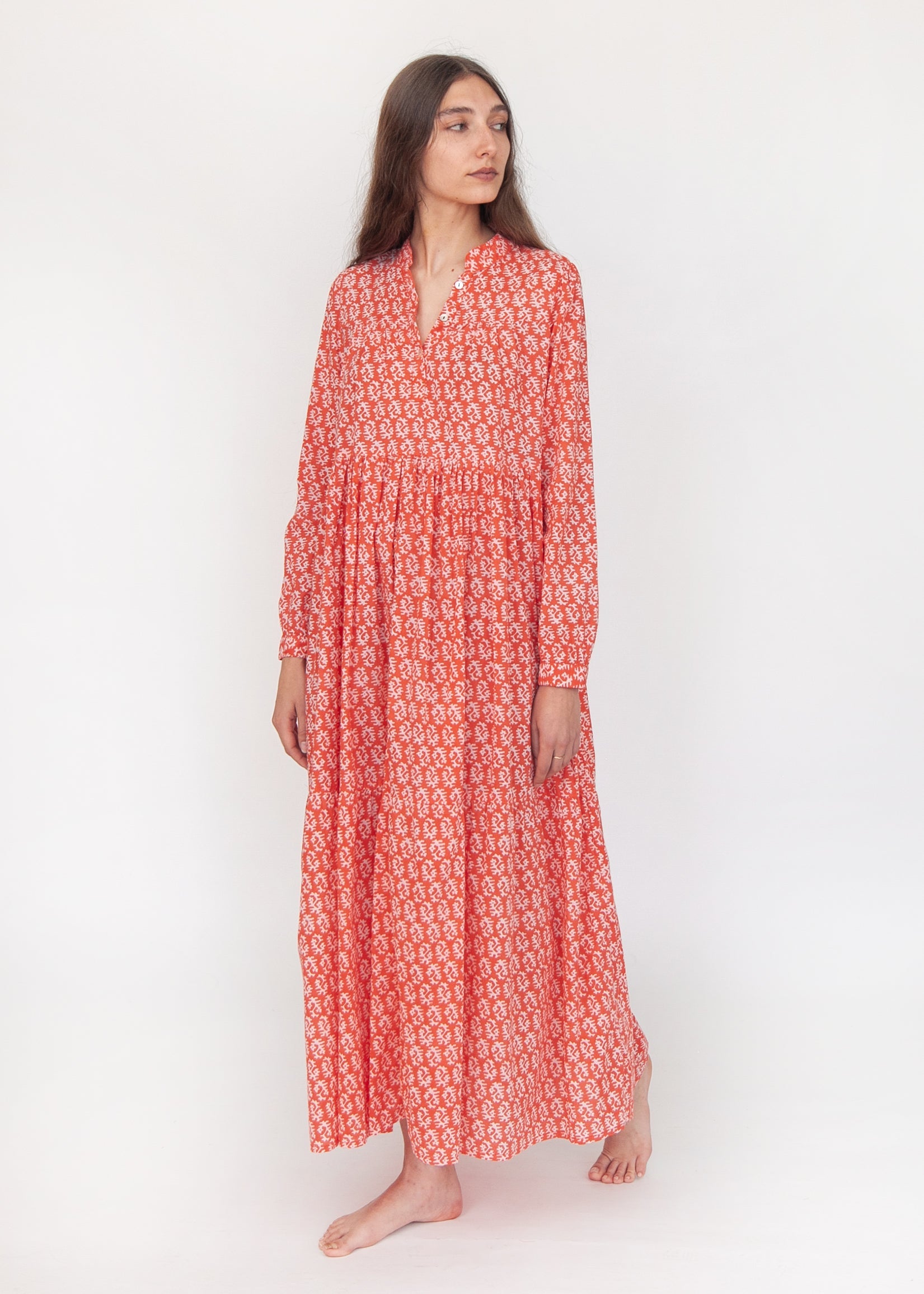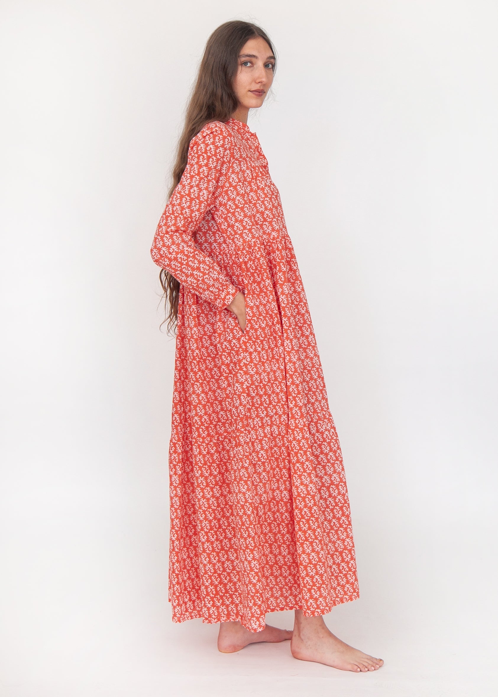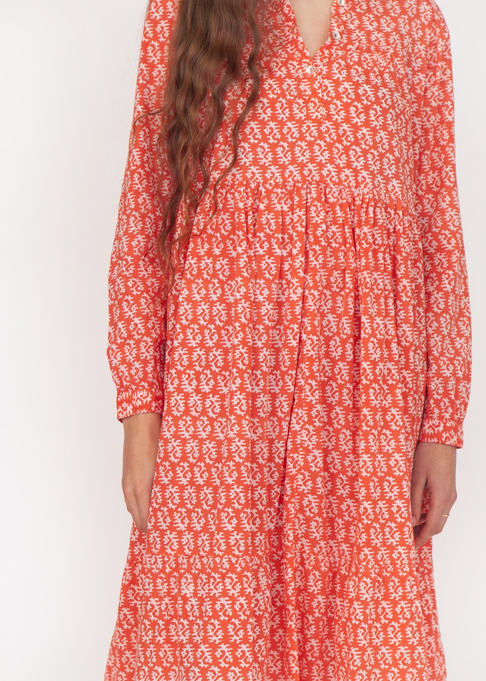Sirena Dress Long Sleeves - Red on Natural